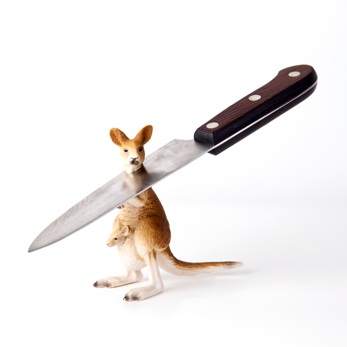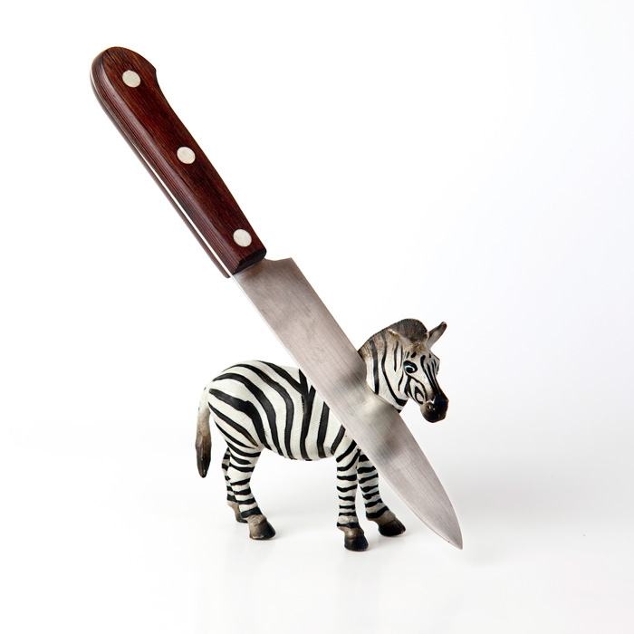 Desde siempre el hombre ha utilizado a los animales a su antojo, sirviéndose de ellos para su propio beneficio; bien por su carne o por su piel, o por las dos. La serie muestra como los animales sucumben al yugo humano y con ello la cabeza cortada, al más puro estilo de la realeza francesa. El artificio humano es simbolizado con el cuchillo que sirve de metáfora visual del poder del ser humano sobre los animales y como lo dominan a su antojo, siempre superiores a ellos.