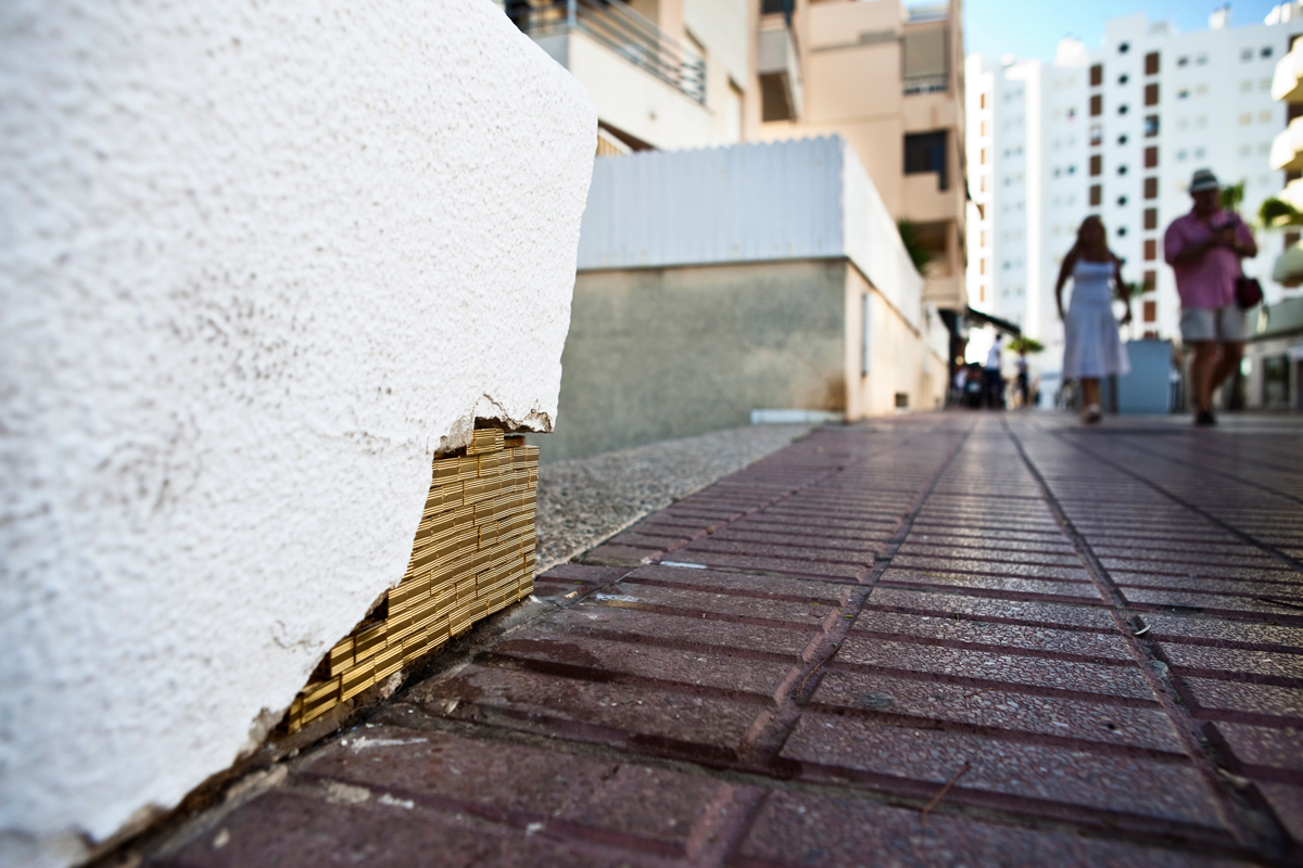 site specific en Rota con ladrillos de cerámica dorados E 1:10