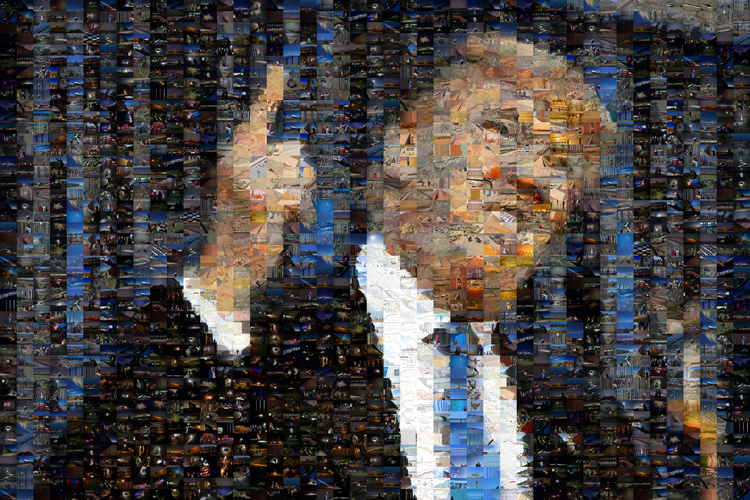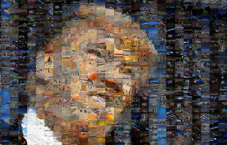 La obra se construye utilizando 2.025 imágenes de la valla que separa USA de México, obtenidas a través de Internet y Google Earth, y que generan el retrato de Trump en una de sus instantáneas más reconocibles. Una metafotografía que configura una realidad dolorosa y que pone sobre la mesa la problemática de la migración.
