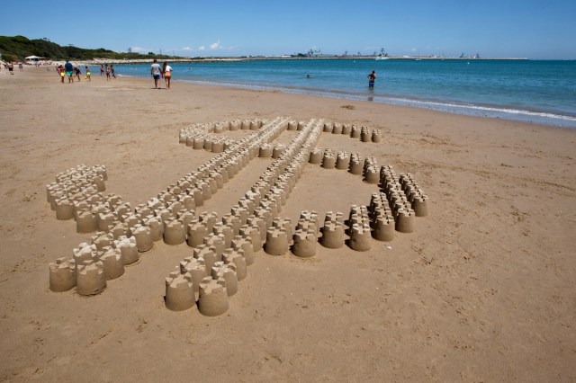 El símbolo del dollar gigante está realizado en la playa que hay justo frente a la base aeronaval estadounidense. El dollar está construido con castillos de arena que poco a poco se va destruyendo conla subida de la marea. Se van diluyendo en el vasto océano con una doble metáfora: por una lado la disolución de los dólares en ese mismo océano que baña rota y nutre a la economía local; y por otro la destrucción de la fortaleza, del castillo, del imperio.