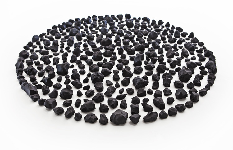 Esta contaminación del carbón se puede recoger y medir mediante su fijación en las capas de hielo perpetuas de la Antártida, generando un hielo negro que se remonta a los inicios de la actividad industrial del siglo XIX. Una polución que llegó 22 años antes de que el explorador noruego Roald Amundsen descubriera el continente en 1911. Black Ice es una pieza que reflexiona sobre la contaminación del carbón en nuestro medio ambiente y se formaliza mediante piezas de porcelana negras en forma de piedras de carbón. Un hielo contaminado y negro que nos presenta una realidad que debemos cambiar. Su montaje en círculo nos habla de una forma continua, sin fin, un círculo vicioso que está llevando al medio ambiente hasta su límite, hasta su colapso y nosotros nos estamos viendo afectados.