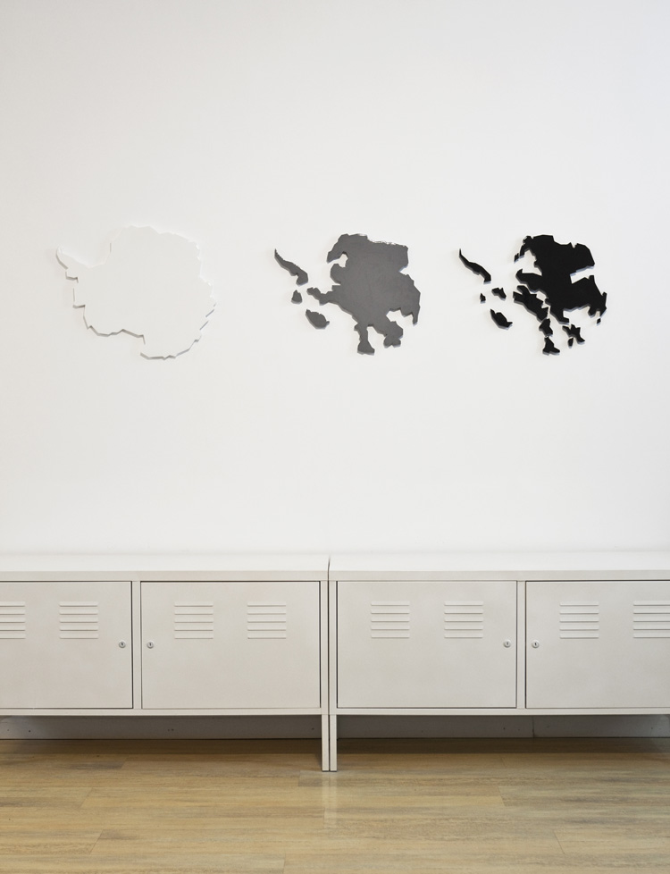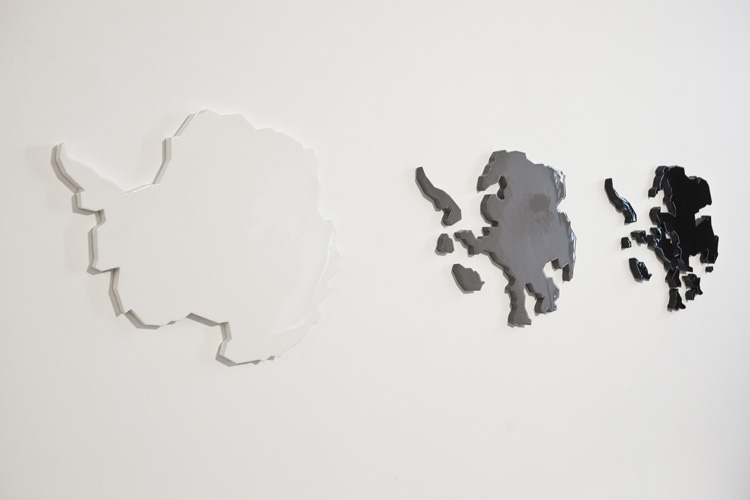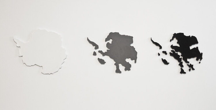 En Antartica. The end of an era, que pertenece a la serie Time to Time, nos encontramos frente a un tríptico desolador realizado en una escala acromática que va del blanco al negro pasando por el gris en la que vemos como la Antártida pasa del blanco, tal como la conocemos actualmente, hasta al negro que será cuando pierda toda la capa de hielo y nieve que la cubre, dejando visible un continente totalmente desconocido hasta ahora. Esta destrucción medioambiental reflejada en el continente helado traerá consecuencias catastróficas para todos los organismo vivos presentes en la Tierra debido al cambio climático devastador y drástico que suscitará, además del consiguiente aumento del nivel del mar y el cambio esperado en el flujo de las mareas. De esta manera, esta pieza, se convierte en una metáfora de la propia desaparición de la especie humana que ve como su futuro se convierte en un agujero negro que todo lo destruirá.