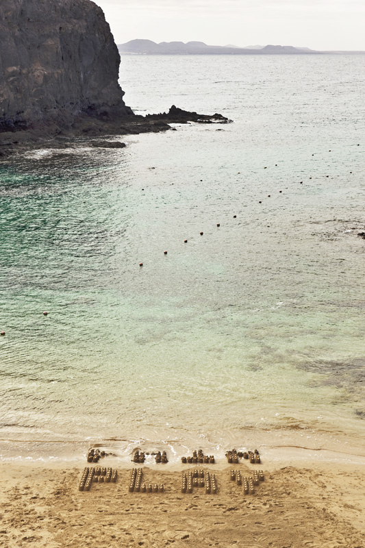 La vía canaria es una de las más peligrosas rutas migratorias y cada año mueren personas intentando alcanzar el sueño de una vida mejor. Una ruta por el Atlántico en la que las condiciones del viaje son inhumanas y en la que no todos llegan, mientras hay unas mafias sin escrúpulos que se enriquecen sin importarles nada ni nadie. Esta pieza pertenece a la serie Fair Play y plantea el propio texto realizado sobre la arena de la playa Papagayo de Lanzarote en una clara alusión a ese juego no limpio que realizamos. El texto va siendo diluido por la subida de la marea en ese mismo vasto océano en el que todos los años mueren cientos de personas.