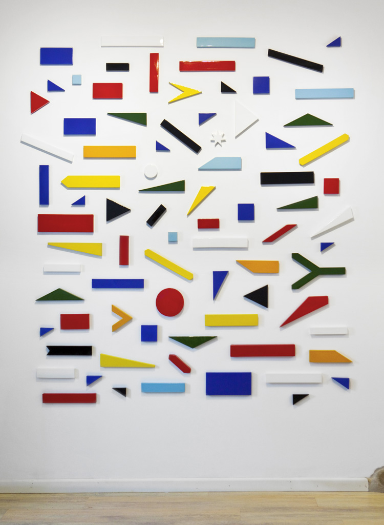 Esta serie parte de la descomposición de las banderas en sus formas y colores básicos generando una abstracción formalista que reflexiona sobe el verdadero valor de los símbolos y lo que representan, porque ¿Son las banderas las mismas si las simplificamos a sus formas geométricas básicas eliminando su estructura reconocible? Las diferentes composiciones generadas tras la división no nos proponen una identidad fija, sino que la cuestionan y abarcan la problemática de la identidad de un país.