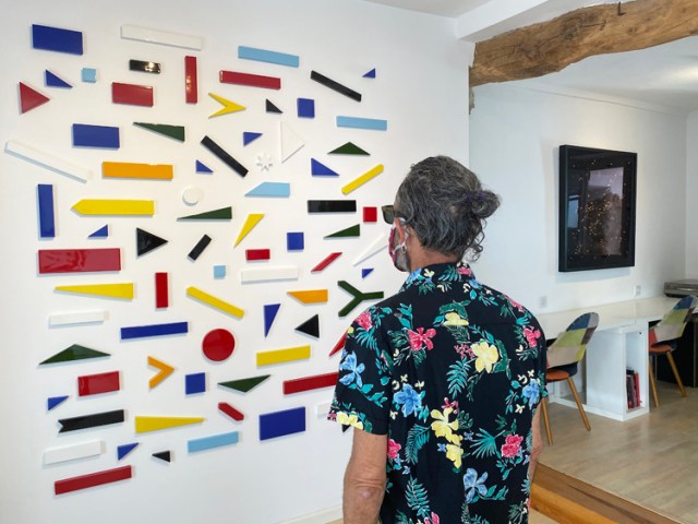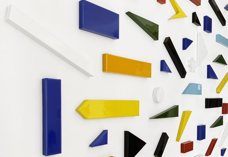 A partir del uso de cuadrados, rectángulos, triángulos, círculos o estrellas se crean diferentes composiciones no figurativas obtenidas de esa descomposición del símbolo nacional por excelencia y en las que no se identifica el país al que pertenecen. Este ejercicio nos permite alejamos de su componente más emocional y pasar a un plano más racional en el que disfrutamos de las formas puras –el contenido del trapo-. La reconstrucción de la no-bandera nos presenta una identidad más líquida y no tan absoluta como lo fue en el pasado; planteando un mundo sin límites ni fronteras, porque si todos compartiésemos los mismo símbolos no existiría el otro, el diferente, el inmigrante.