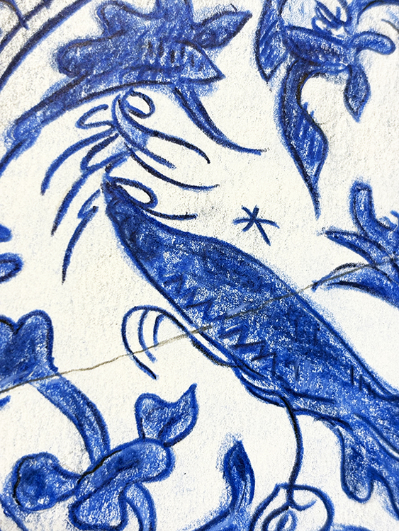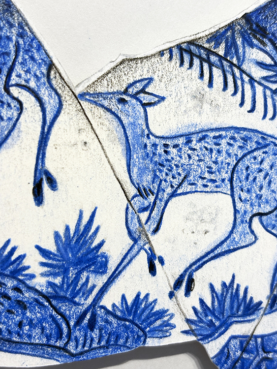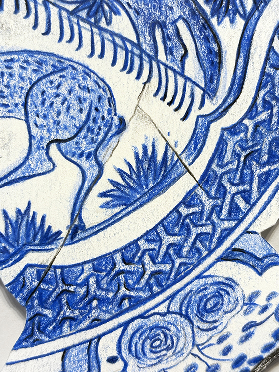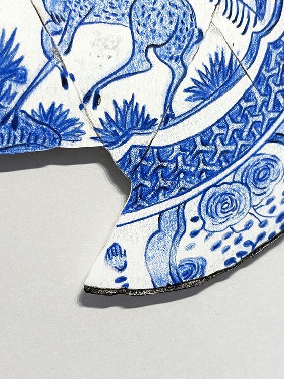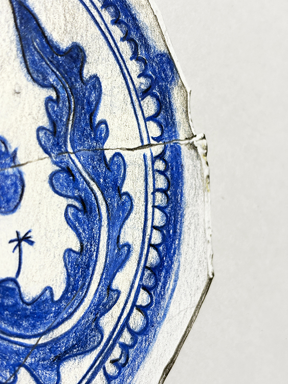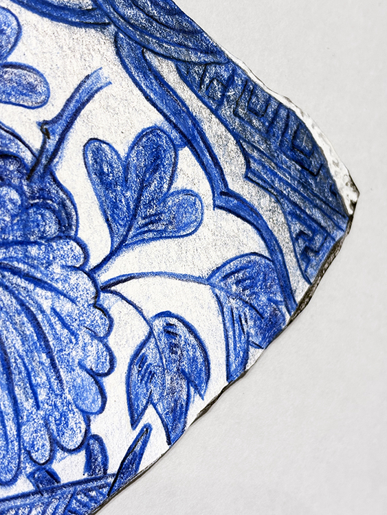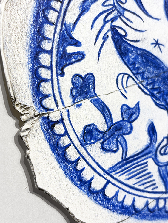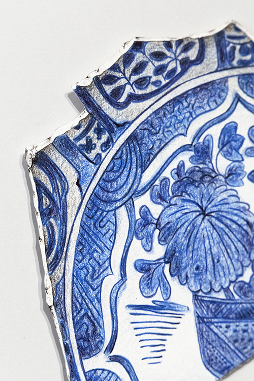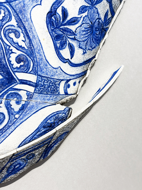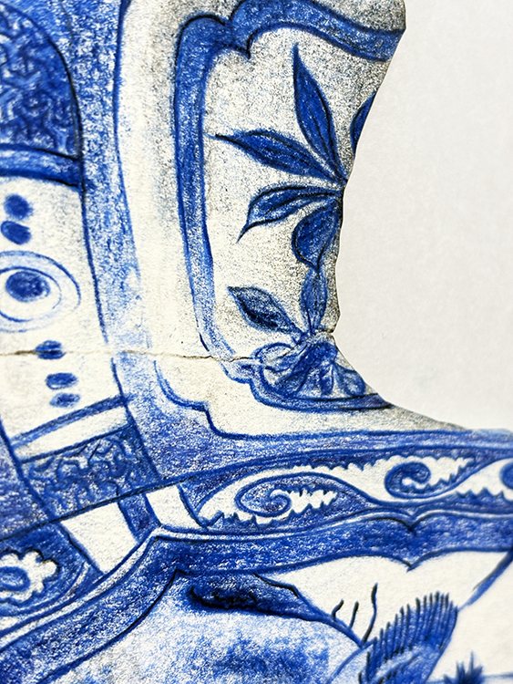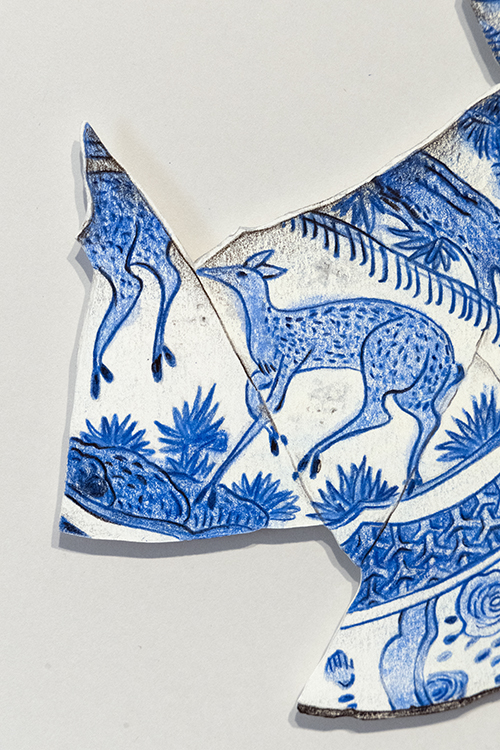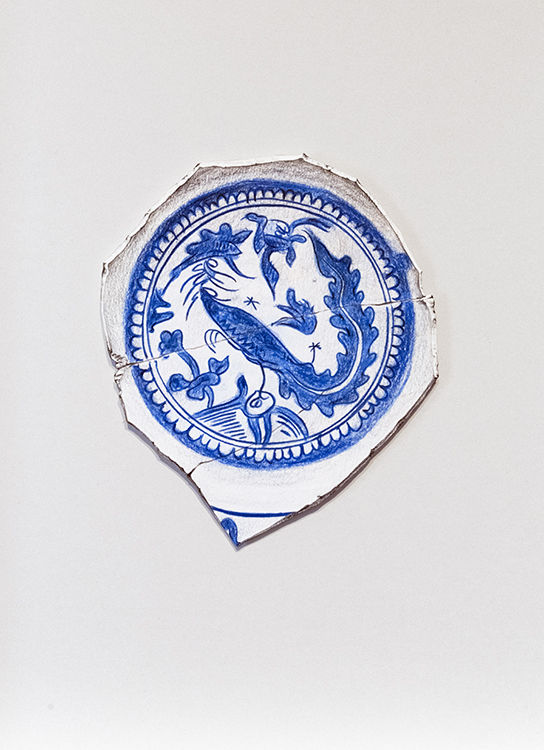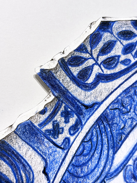 Kraak Porcelain. Fragment 3 | Dibujo sobre papel caballo recortado | 42×39 cm. | Cyro García