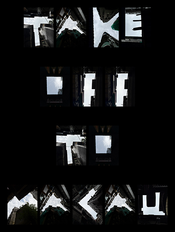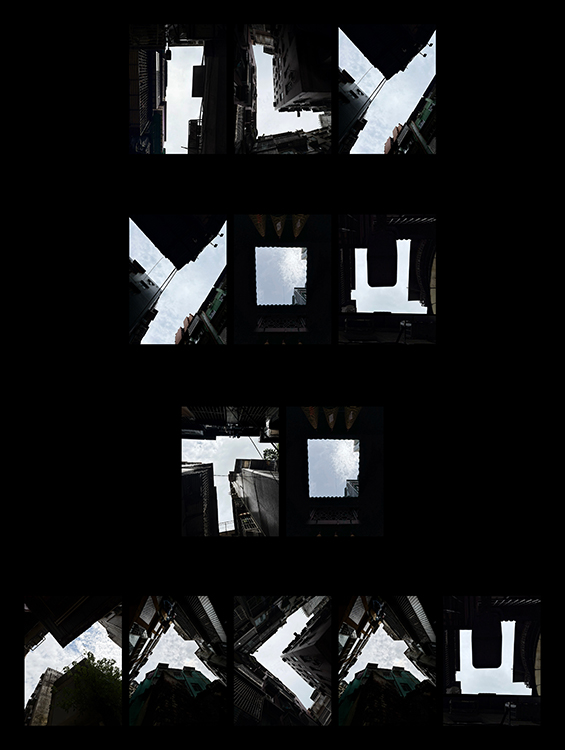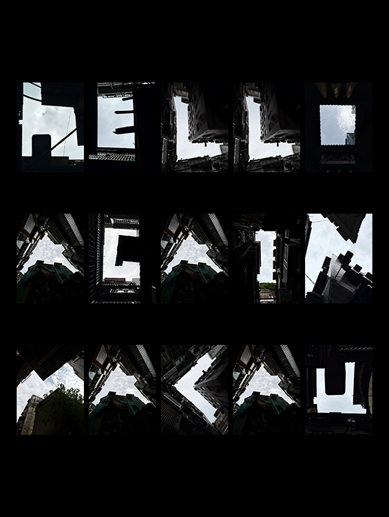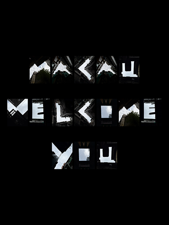Esta tipografía se utiliza para recrear algunos de los eslóganes oficiales de la Oficina de Turismo de Macau como son: “Fly you to Macau”, “Hello again Macau”, “Take off to Macau” y “Feel Macau”. A través de estas fotografías los mensajes comerciales pasan a un segundo plando, invitando al espectador a experimentar la ciudad con una nueva mirada. En este sentido la obra opera como una disección fenomenológica del espacio urbano, donde el alfabeto deja de ser un sistema de signos abstractos para convertirse en el registro indexical –a modo de huella dactilar de la arquitectura– de una geografía concreta. Ésta es una tipografía del vacío que nos obliga a leer la ciudad a través de la tensión entre sus límites materiales y la libertad de su espacio negativo.