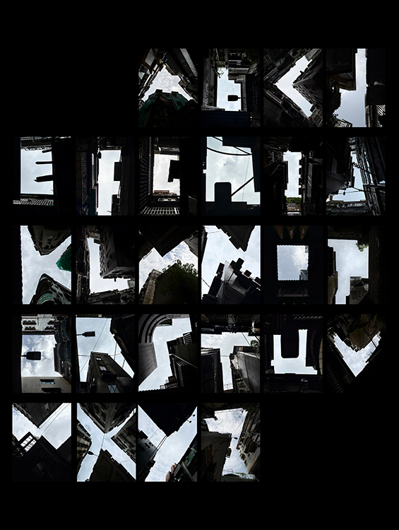 La obra propone una deconstrucción del paisaje urbano para transformarlo en un sistema de comunicación visual mediante el uso sistemático de fotografías en contrapicado. La elección de este plano permite que las siluetas de los edificios históricos de Macau actúen como límites físicos que moldean el vacío. Ese mismo vacío es el que modela la tipografía, donde el espacio negativo es el que revela la estructura de cada letra. El resultado es un alfabeto que no solo documenta la arquitectura local, sino que captura la «huella aérea» de la ciudad, convirtiendo lo intangible en un lenguaje legible.